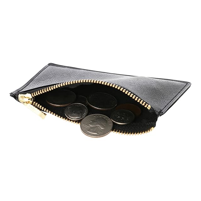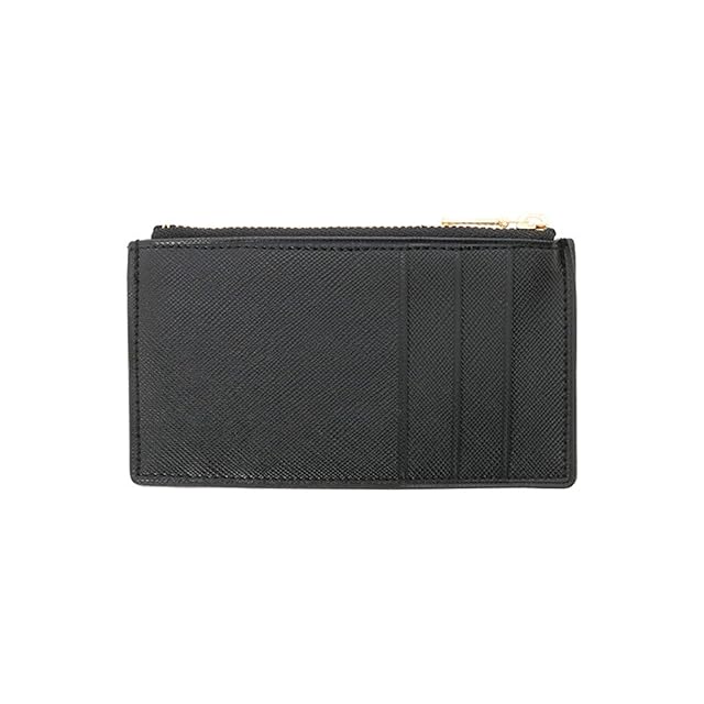 ファスナーが付いたポケットが一つと、背面には3つのカードポケット付き。薄くコンパクトなサイズ感で、小銭や3つ折りにしたお札、鍵や小物なども収納できます。