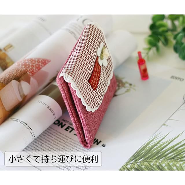 【スタイル】:Bレッドのカラー、三つ折、綿生地、レースの飾り、磁気スナップ、小さくて持ち運びに便利、バッグインバッグ、普段使いの鞄などに入れてもかさばりません。花柄はレトロでエレガント。ダブルバッグのデザイン、2つポケット、容量:4-6ピース。