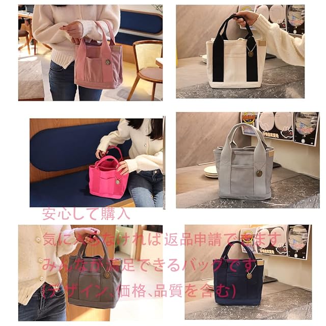 ヒント:外にはもう一つのポケットがあります。鍵、携帯などを置くことができます。ミニ トートバッグはお弁当箱やペットボトルがすっぽり入り、ランチバッグにピッタリ。