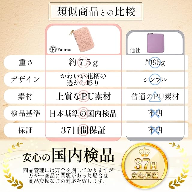 【サイズ感&ファスナー】かわいい花柄の透かし彫りデザインで、片手に収まるサイズなのに大容量のカードケースです。ラウンドファスナーなので開け閉めがスムーズにでき、完全に閉じることができるので、落としたりしても中身が飛び出ることがなくなります。