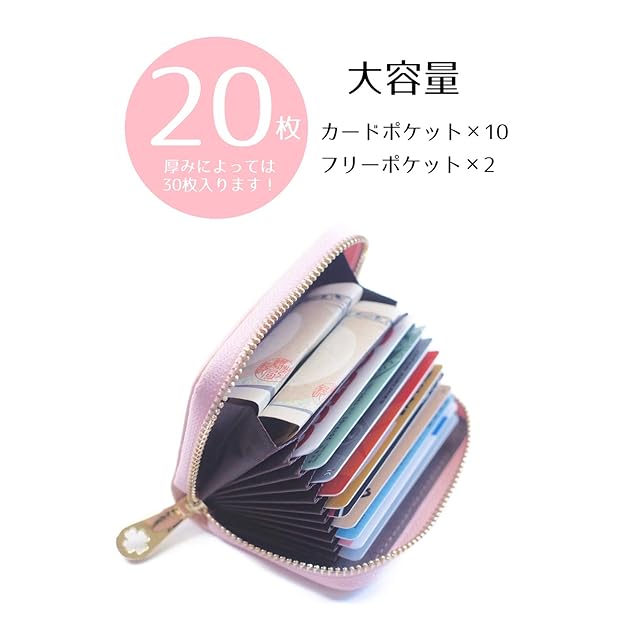 【大容量な収納】10個のカードポケットに2つのフリーポケットがあるので、約20枚のカードやお札、小銭まで収納可能。ランチタイムやコンビニなどちょっとしたお出かけにとても便利です。