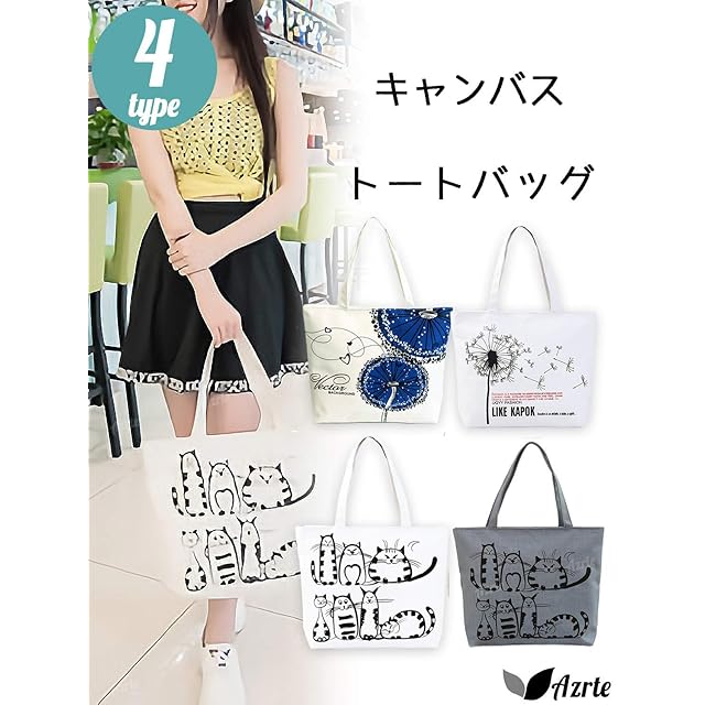 【カラー】グレー(キャット)、ナチュラル(キャット)、ホワイトブルー(フラワー)、ホワイト(タンポポ 綿毛) (全4柄) 【サイズ】フリー【素材】帆布