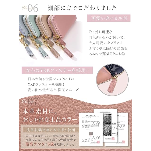 ✅✅【必要なカードがパッと一目瞭然に確認できる♪】世界No.1シェアのファスナーメーカーであるYKKファスナーを開けると、最大180度開くジャバラ式のカード入れはデザインを日本で行い、色味は流行りのくすみ系で統一しております。
