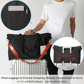 【キャリーオン】キャリーオンバッグとして使用する場合、スーツケースの持ち手に通すことができます。これにより、スーツケースと一緒に持ち運ぶことができ、旅行中の荷物を効率的に管理することができます