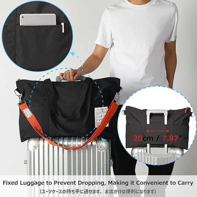 ✅【応用】容量は約24Lの旅行バッグは1泊分の荷物が入れる、収納力抜群です。スーツケースの上に乗せて、頻繁に出し入れするアイテムをバッグにしまっておけば、サッと取り出せます。旅行、出張時の便利グッズです
