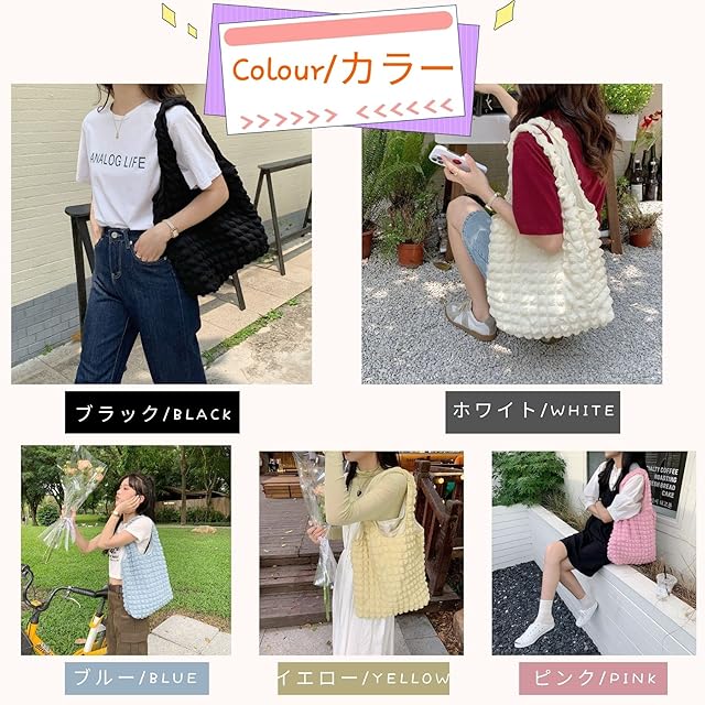 【可愛いデザイン】ポコポコとした凹凸がまるでポップコーンのようなコーデのアクセントになる軽いバッグ可愛いトートバッグが新登場。肘に掛けても肩掛けでも可愛いシンプルで合わせやすく、オンオフ兼用でお使いいただけます。