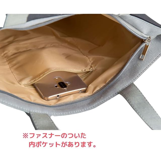 猫柄トート バッグ クロネコ ファスナー付き 裏地・内ポケットあり キャンバス 習い事カバン (ピンクB)