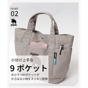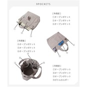 【商品概要】 color:ホワイト: タテ23cmxヨコ(上部31cmx底部22cm)xマチ10cm ポケットの数:9(外側6/内側3) 重量:200g 持ち手の全長:27cm