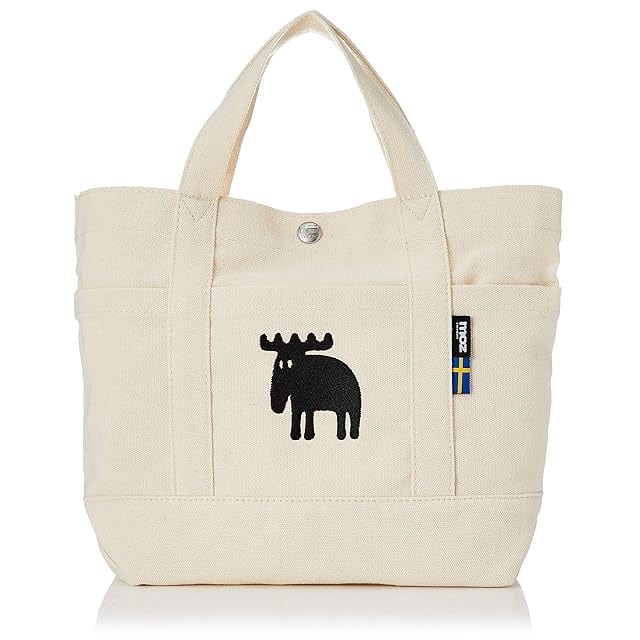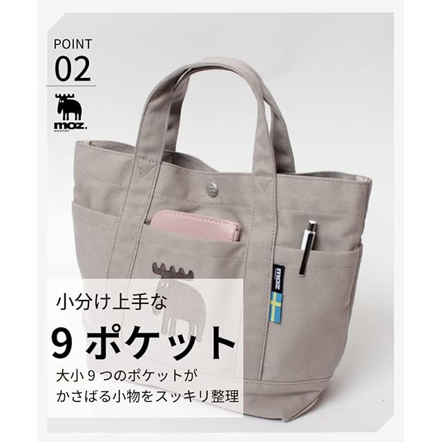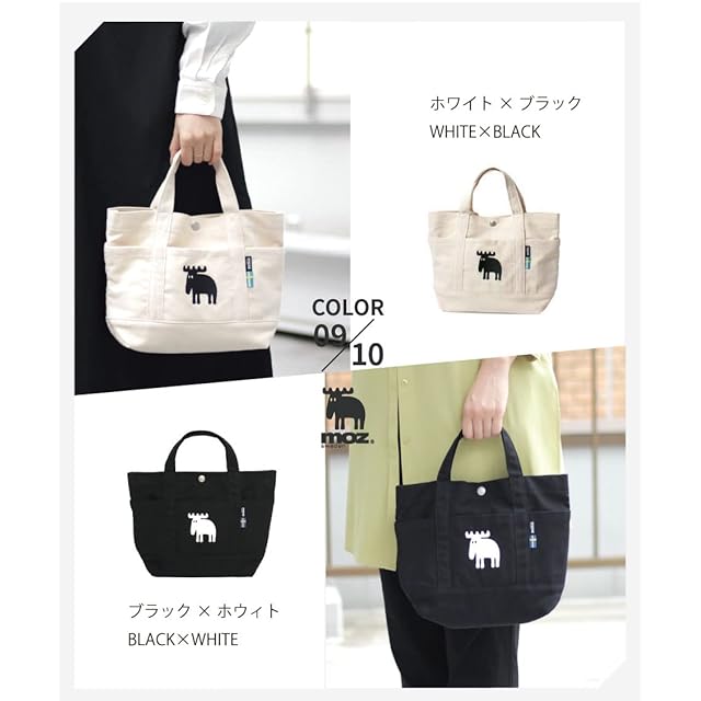 moz(モズ) トートバッグ Mサイズ Sサイズ (約31×23cm) 刺繍 ポケット付き ボタン付き 帆布 キャンバス 小さめ ミニサイズ ZZHC-04 レディース ホワイト | AVENIR