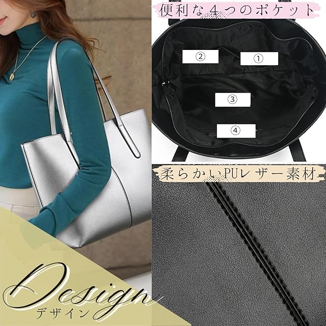 【高級感のあるPUレザー】PUレザー素材を使用することで、丈夫で、柔らかい心地を再現!少しの汚れならサッと拭き取るだけですぐに綺麗になり、お手入れが簡単!持つだけで大人スタイリッシュになれ、カジュアルだけでなくフォーマルなシーンでもオススメなトートバッグ!