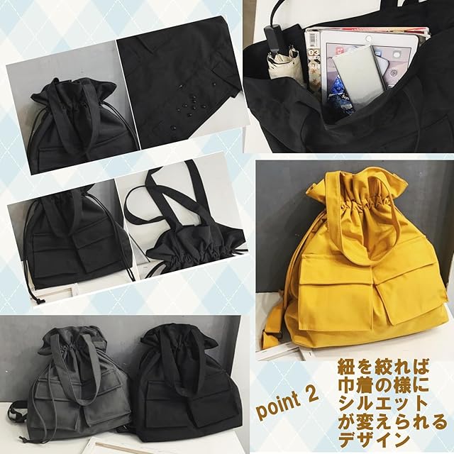 実用性とデザイン性を兼ねそろえた2WAYリュックサック。リュックとして背負うだけでなく、トートバッグとして。スタイルや好みに合わて持ち方を変えられます。入り口が大きく開くため、中の荷物の出し入れがスムーズ。紐を絞れば巾着の様にシルエットが変えられるデザイン性の高さもポイント。大容量の収納とシンプルな作りなので、カジュアルすぎない大人のバッグとしてご使用いただけます。男女問わず使えるシンプルなデザイン。プライベートはもちろんビジネスシーンにも最適。