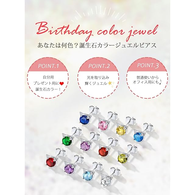 [12誕生石が選べる] (1月)ガーネット、(2月)アメシスト、(3月)アクアマリン、(4月)ダイヤモンド、(5月)エメラルド、(6月)アレキサンドライト、(7月)ルビー、(8月)ペリドット、(9月)サファイア、(10月)ピンクトルマリン、(11月)トパーズ、(12月)タンザナイトの12種類の誕生石からお選びいただけます。
