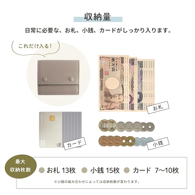 [素材]牛革 [推奨収納量] ・お札 × 8-12枚 ・小銭 × 10-12枚程度 ・カード × 4枚