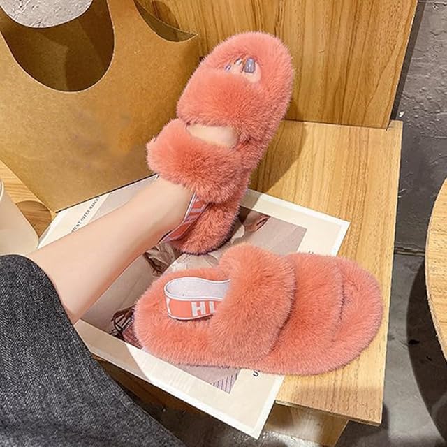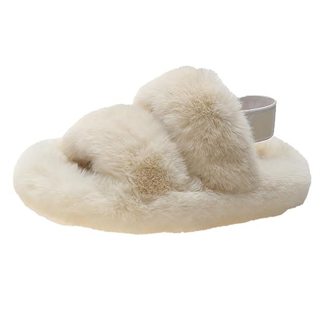 [miniministore] ファーサンダル レディースファースリッパ ルームシューズ 冬 暖かい おしゃれ フェイクファーサンダルスリッパ もこもこ ぺたんこ コンフォートサンダル 静音(アイボリー,22.5cm(1))