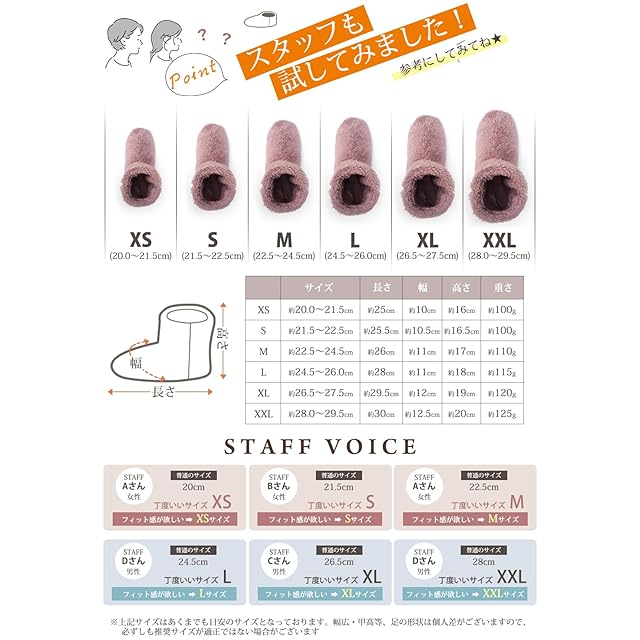 ❄【あったかスリッパ素材または裏地】ボアスリッパ毛羽部分:ポリエステル100%(マイクロファイバー繊維)中材:PVC製中板【高繊維綿素材 裸足ではいても気持ちいい 】綿毛が密生しており保温力に優れ、光沢に富んだシルキ- -なタッチ。【高繊維綿素材 裸足ではいても気持ちいい 】綿毛が密生しており保温力に優れ、光沢に富んだシルキ- -なタッチ。【サイズ(外寸)】❄ Mサイズ22.5~24.5cm(長さ:約26cm/幅:約11cm/高さ:約17cm/重さ:約214g);❄Lサイズ24.5~26.0cm(長さ:約28cm/幅:約11cm/高さ:約18cm/重さ:約235g);❄XLサイズ26.5~27.5cm(長さ:約29.5cm/幅:約12cm/高さ:約19cm/重さ:約249g);❄XXLサイズ28~29.5.cm(長さ:約30cm/幅:約12.5cm/高さ:約20cm/重さ:約282g)