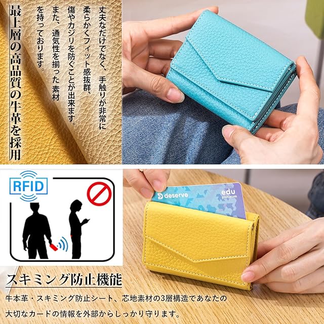 ⭐【実用性】お札10枚以上、カード7枚入ります、小銭入れ付き、コイン収納に便利です。 【スキミング防止機能】:牛本革・スキミング防止シート、芯地素材の3層構造であなたの大切なカードの情報を外部からしっかり守ります。ミニ財布は日常的な使用に合わせています。手のひらに収まる可愛らしいサイズ感が魅力です。シンプルなデザインで大人っぽさを演出します。長年にご使用いただけるミニ財布です。