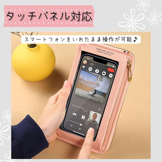 【スマホをいれたまま操作可能】 タッチパネル対応でスマートフォンを取り出さずに操作が可能。さらに充電口もついているので収納したまま充電も可能です!
