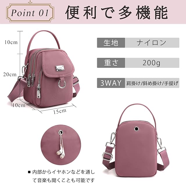軽量で使いやすいスマホポーチです。肩掛け・斜め掛けはもちろん、ストラップを外して手提げバッグとしても便利です。