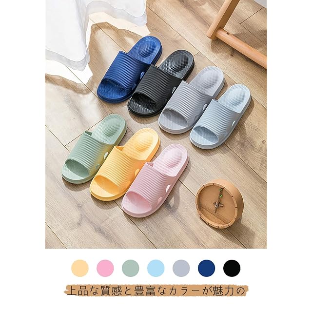 【抗菌防臭/滑り止め/丸洗い可】環境にやさしいEVA素材を採用し、Ag銀系の抗菌剤を使用して、抗菌防臭作用があります。靴底にはEVAゴムを採用され、弾力が強く、靴底に深いしわの設計で滑りにくいです。音も出てにくいです。耐損耗性も優れています。何回洗濯しても抗菌機能が持続するAg+安心スリッパ! スリッパ表面に滑り止め粒子を使用され、水濡れの際には足が滑る心配はありません。サンダルは匂いせず、柔軟快適で、軽量で履き心地が良いです。