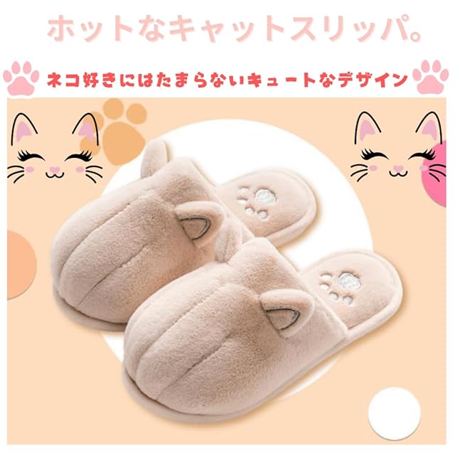 キュートなネコの耳のルームシューズです。クッション素材でフィット感も抜群です。ふわふわなので裸足で履いてもとても暖かく冬場の長時間の家事仕事も快適にこなせます。1度履いたら癖になってしまう履き心地です。猫好きな方は是非どうぞ。