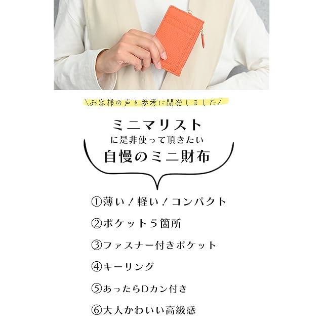 ✅・重さ約40gの軽量・薄型設計のカードケースです。片側にマチがあるのでぱっくり開いて中身が見やすい。ストラップにぶら下げても負担がかかりにくく、ミニバッグの中でも場所を取りません。