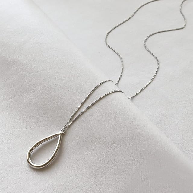 艶やかな光沢感が美しいメタルのドロップ型モチーフのペンダントネックレスです。