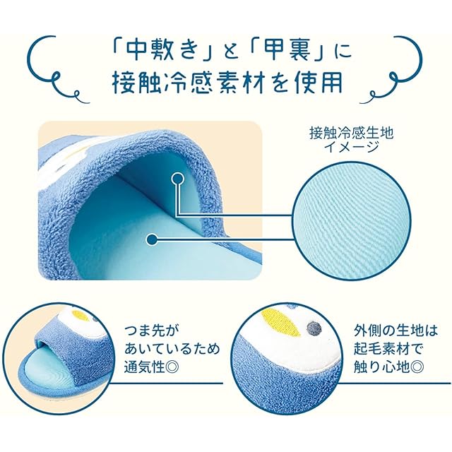 クールで涼感得られる、接触冷感素材を使用した、さらり 爽やか 快適 夏用スリッパ。