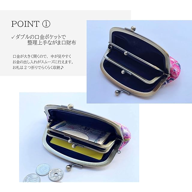 【口金】幅:約12cm、高さ:約4.5cm、厚み:7mm、玉直径:約7mm、小がま口:約10.5cm×2.5cm※外寸(玉部分含まず)