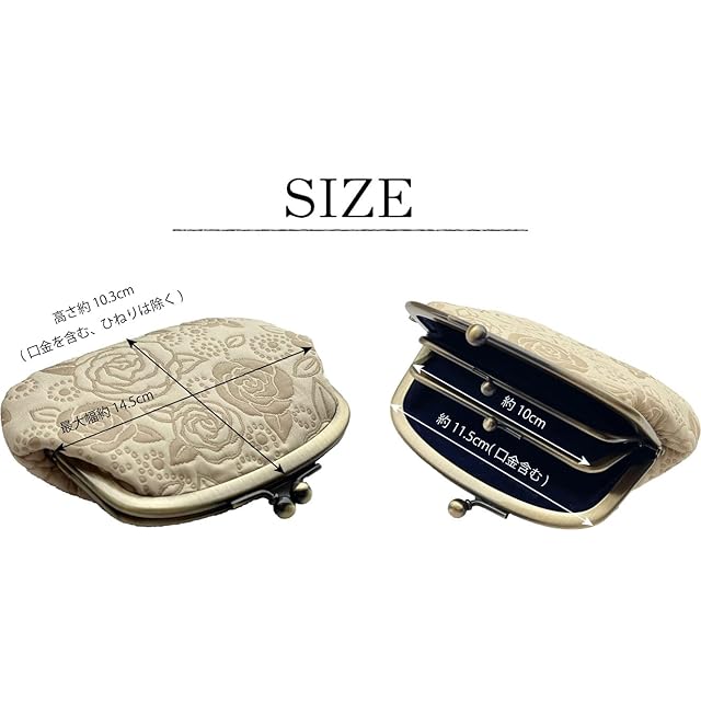 【本体】最大幅:約14.5cm、高さ:約10cm(口金含まず)、厚み:約2cm
