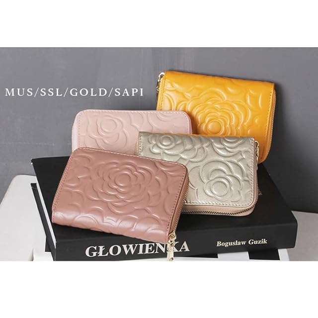 カメリア型押し仕上げが上品で女性らしいデザインの本革コインケース。