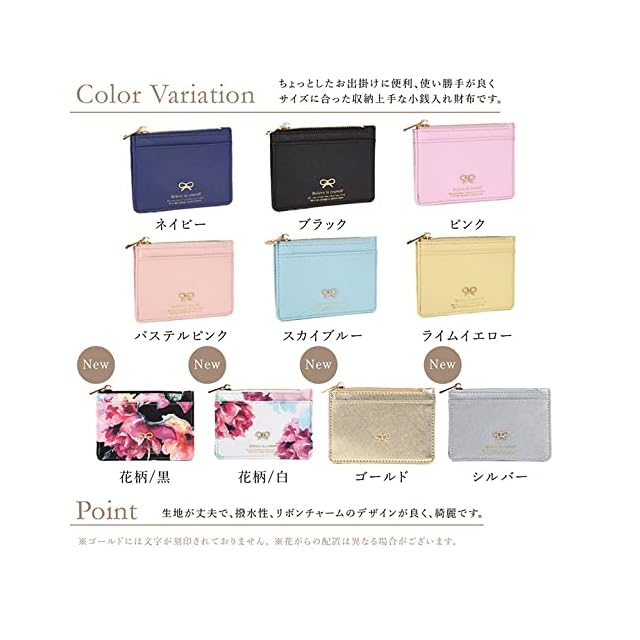 【ジュエルビューティーズセレクトのこだわり 】デザインの外見も使いやすさの内面も重視して、丁寧に作りました。綺麗なゴールドカラーのリボンチャームが綺麗です。丈夫で撥水性がある生地を使用。ブランドデザインを重視、撥水性、耐久性を重視、きちんと何度でも閉まるように、金具もゴールドで比較的良いものを採用しております。