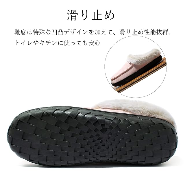 【滑り止め】防寒対策に最適な厚めの靴底には特殊な波紋デザインを加えて、滑り止め性能抜群でトイレやキチンなどの場所に使っても安心します。