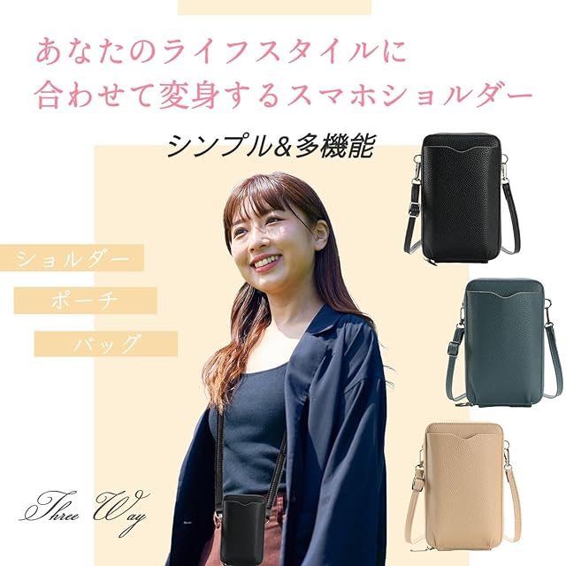 [FreeLife] スマホポーチ PU レディース スマホショルダーバッグ スマホショルダーポーチ スマホバッグ 財布 斜めがけバッグ 小銭入れ (ブラック)
