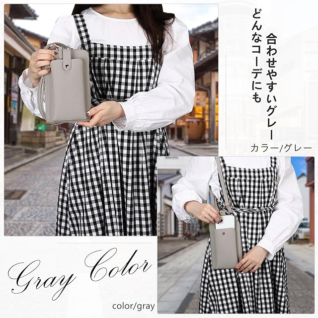 [JISON21] スマホポーチ レディース PU革 スマホポーチ 携帯バッグ 皮 ショルダーバッグ スマホバッグ お財布ショルダー 携帯電話 ケース バッグ 斜めがけ スマホ収納 多機能 肩財布 長さ調節可能 小銭入れ 肩掛け 手提げ カード収納 携帯ポーチ 元日 ギフト 新年 プレゼント (グレー) | AVENIR