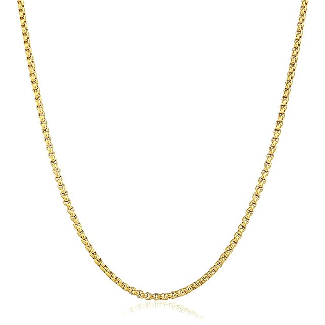 普段使いに最適なシンプルラウンドボックスチェーンネックレス。メンズにもレディースにも人気の高いデザインでどなたにでもおすすめできるシンプルなチェーンネックレス! 小さなボックスのリンクチェーンでそのままでもお持ちのネックレストップを合わせてもしっかりデザイン性のあるチェーンです。フォーマルスタイルにもカジュアルスタイルにも相性がよく、シーンを選ばずどんな時でも着用OK! カラーバリエーションはゴールドとシルバーの2色展開で太さは2mm、3mm、長さも各種取り揃えてあり、自分の好みにあったサイズを選択可能。サイズ違いのチェーンを重ねづけすることで、きれいな輝きで存在感を強調しオシャレにコーディネートすることができます。