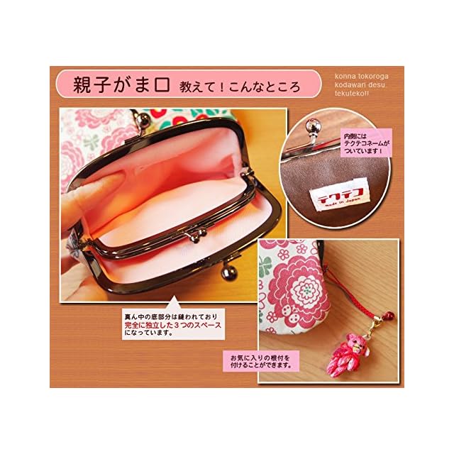 サイドに丸環があるので、ストラップや根付をぶら下げることができるのも嬉しいポイント。一枚の布から切り取りますので、柄が1つずつ異なります。内布の色が変更になる場合もあります。サイズ:幅約17×高さ約10.5cm×まち約1.5cm 開閉時:約9cm(がま口大)、約5.5cm(がま口小)、生地素材:綿100%、製造:京都、日本製