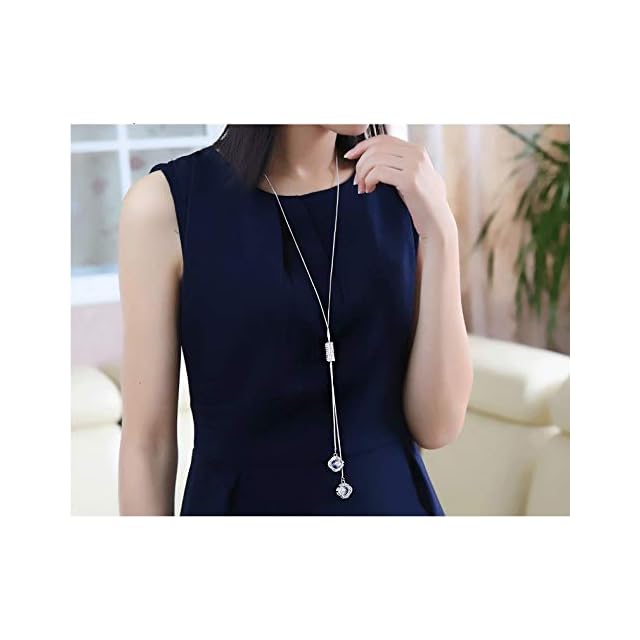 [UOUHAIO] ロングネックレス レディース ファッション 女性用 長いネックレス Y字 キラキラ セーターチェーン スライド調整式 プレゼント 女性 アクセサリー ジュエリー (銀色) (クローバー) | AVENIR