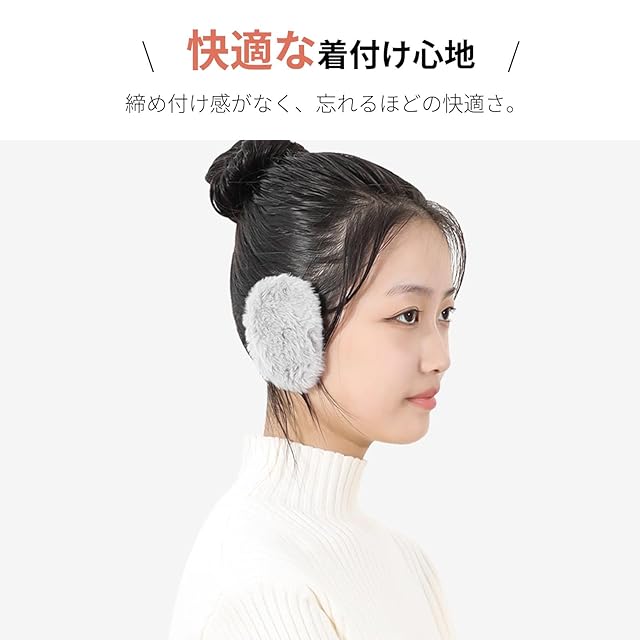 ファータイプとボアタイプの二種類がありどちらも可愛くてあたたかいです。またサイズも3種(S、M、L)があるので、子供から大人まで、男女問わず、家族のみんなもご使用いただけます。耳だけに付けるフレームレスタイプなので、締め付け感が無い、見た目もおしゃれです。またヘッドがないで髪型も乱れず、装着したまま帽子やヘルメットなどもかぶることができます。カラバリも豊富でセーターやコートなどの秋冬ファッションにも合わせやすく、自在な耳のカバーです。