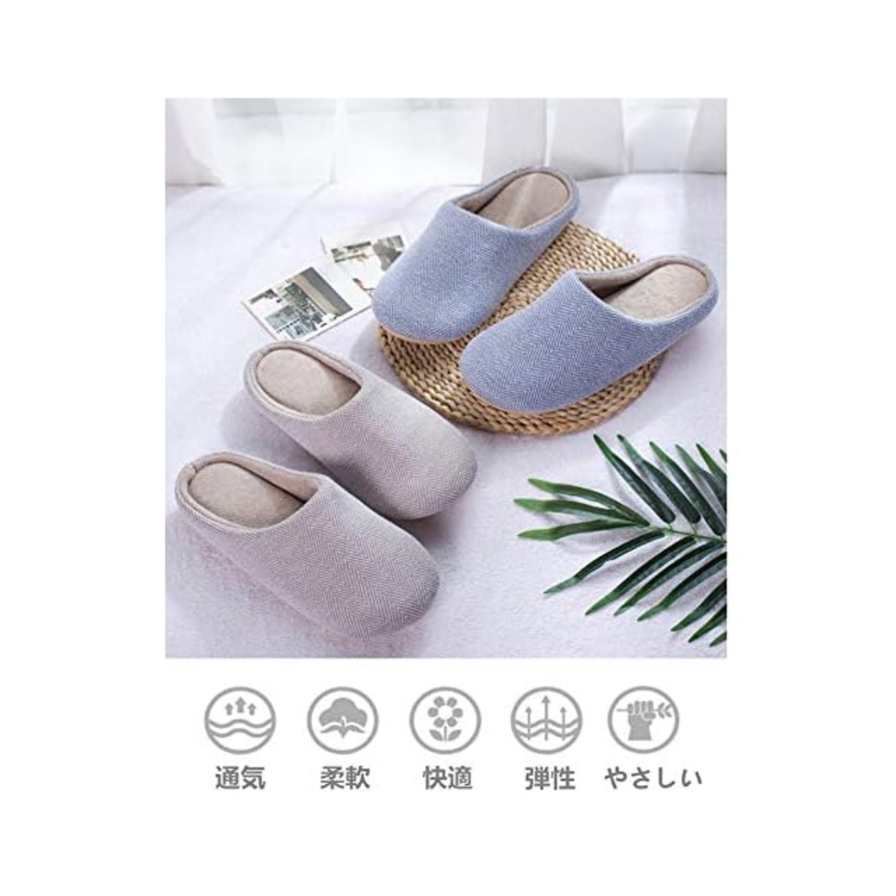【2足セット&品質保証】メンズ用(ブルー):26-28cm ;レディース用(グレー):23-25cm。夫婦で、カップルで、お部屋の中で履くお揃いのルームシューズでいつも仲良し、日常使いの室内用スリッパとして、入学式や来客用のスリッパ、トイレ用スリッパとしてもお勧めです。180日の安心保証期間付きので、万が一品質上の問題があれば、返品、交換、返金にて対応致します。安心してご利用ください。