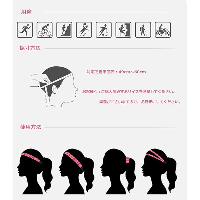 素材: ポリエステル、シリコン サイズ:対応できる頭囲49cm~60cm 幅1.8cm