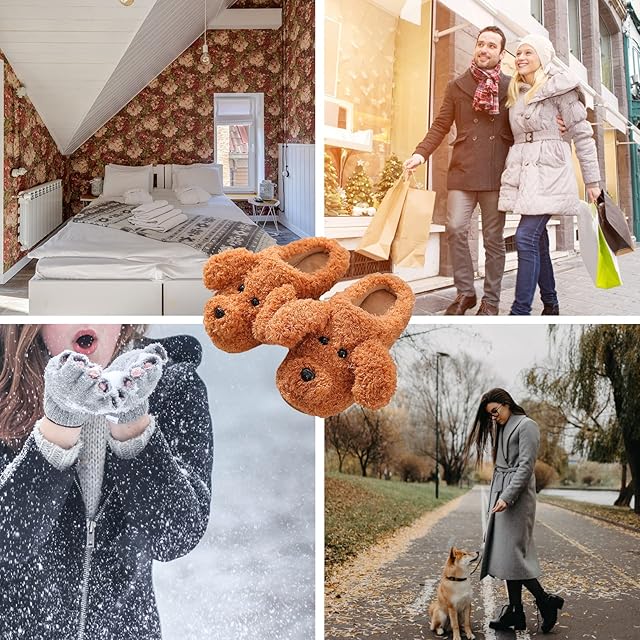 [OYUEGE] スリッパ 室内 あったか もこもこ スリッパ 冬 可愛い 犬柄 レディース メンズ 室内履き 冬用スリッパ あったか 防寒 静音 洗える 滑り止め 【24.5 cm ライトブラウン】 | AVENIR