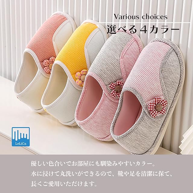 [レリカ] ルームシューズ 介護 スリッパ 室内 履き かかとあり 高齢者 シューズ 花 軽量 滑り止め 女性 用 レディース 小さめ 滑らない 春 夏 秋 冬 介護用スリッパ 女性用 室内履き スリッポン 入院 可愛い オシャレ すりっぱ 来客用 歩きやすい 履きやすい プレゼント (イエロー, 22.5~23.0cm) | AVENIR