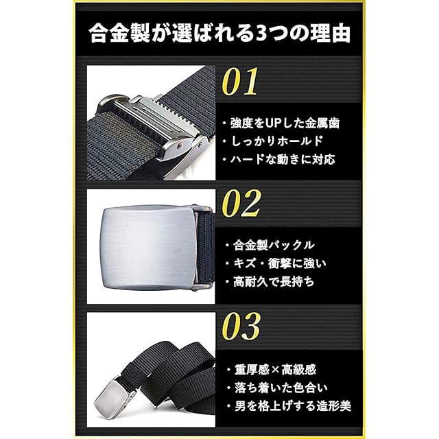 ✅【 ハード合金バックル 】 高密度な合金素材でキズ・摩擦に強い表面ハードクロム加工を施しております。100Nの引っ張りにも耐える強度を備え、頑丈に腰回りをロック。半永久的に使用可能です。