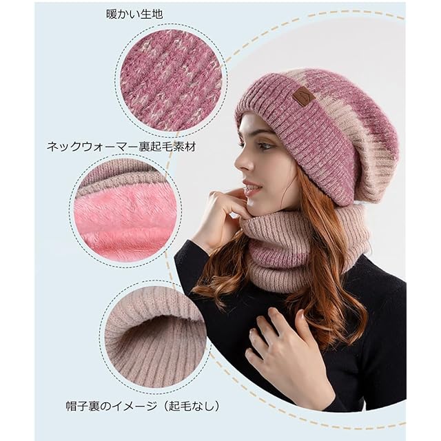 【冷たい風から完全防備】ニット帽子とネックウォーマーのセットなので、冬の寒さからしっかり守る裏起毛で内側は暖かく、今年の防寒はコレで決まり!