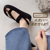 <p><b>【ゴムストラップでしっかりホールド】</b><br> 伸縮性のあるゴムストラップが足をしっかりと固定し、安定感のある歩行をサポート。脱ぎ履きもスムーズです。</