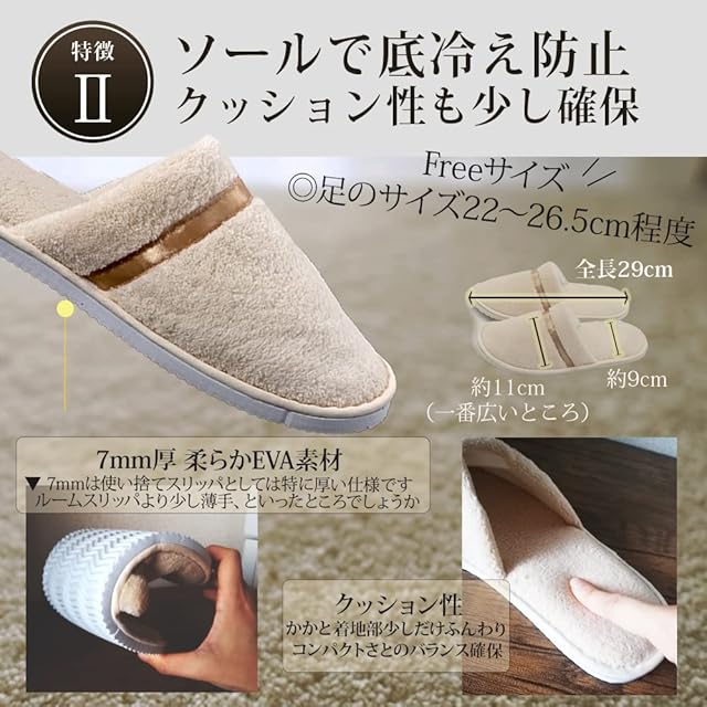 【特徴】コーラルパイルが ふわふわ で気持ち良く肌触りがなめらかです 前閉じ仕様で歩行に衛生的であり、クリニックやエステ、ビジネスシーンでの来客対応に。汚れの目立たないカラー展開。使い捨てスリッパの中では厚底タイプ。