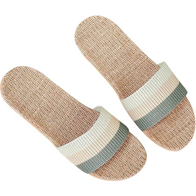 [Euyqs] メンズ レディース 夏 ルームシューズ 室内 来客用 部屋用 履きやすく静音で軽量 麻 夏春スリッパ (グリーン, 大人, 19.5 cm, 長さ・寸法・重量(範囲), 日本の靴のサイズ寸法, 20.0 cm) | AVENIR