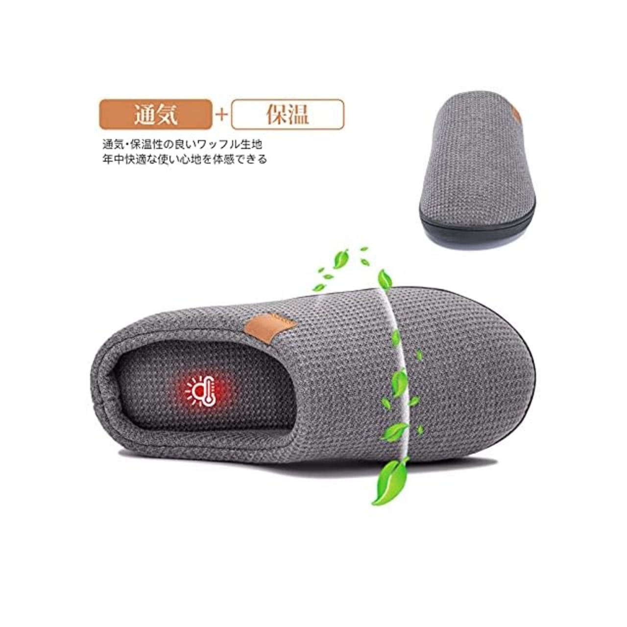 【通気性・保温性】ルームスリッパは通気性・保温性の良いワッフル生地を使用して、肌あたりが優しく、春夏秋冬、季節を問わずに快適な使い心地を体感できます。