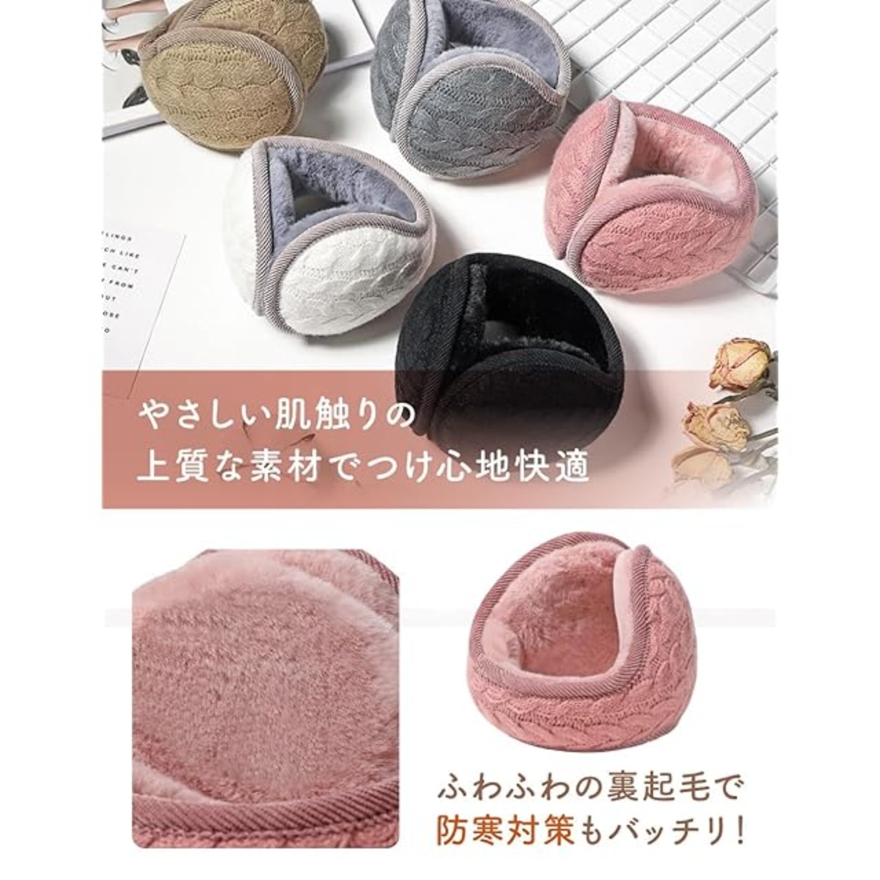 [and Scene] イヤーマフ 男女兼用 メンズ レディース 耳当て イヤーウォーマー おしゃれ もこもこ 裏起毛 ボア 防寒 冬 自転車 折りたたみ (ケーブル編・ピンク)