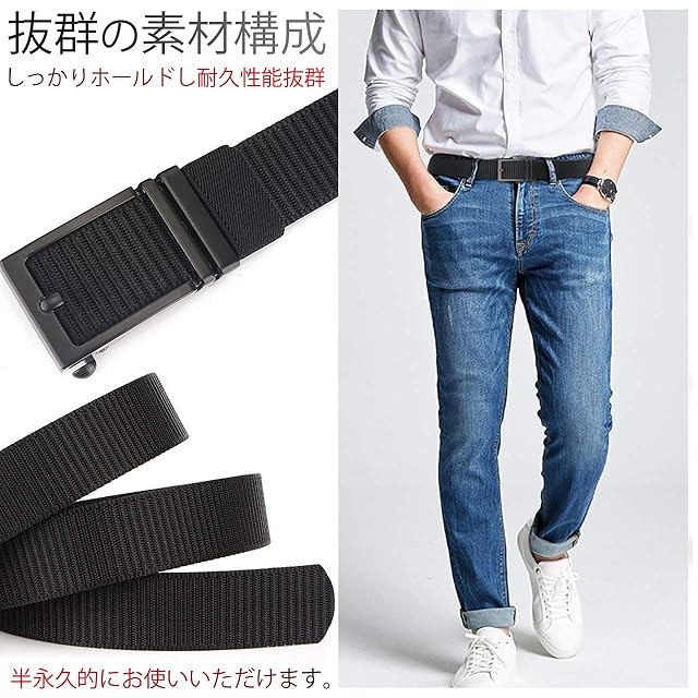[TAILOR JAPAN] メンズ ベルト ナイロンベルト オートロック式バックル 無段階調整 穴なし ワンタッチベルト サバゲーベルト タクティカルベルト ミリタリーベルト 作業用ベルト 軽量 (ブラック) | AVENIR